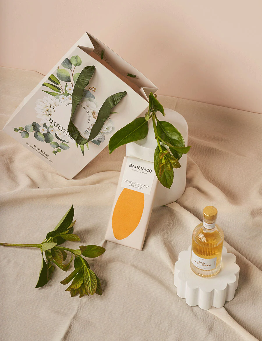 Paired with a Maybe Sammy Old Fashioned cocktail and a block of Bahen & Co’s rich orange and hazelnut 75% chocolate, this bundle delivers bold style, great taste, and zero hassle. The perfect gift for anyone who wants maximum impact with minimal effort.